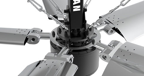 W.FANS系列是zoty中欧体育官方网站研发的基于PMSM永磁同步原理的新型HVLS节能超大工业吊扇,真正做到免维护,无需更换机油、油封。